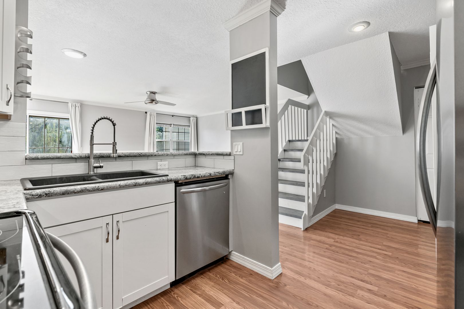 Summer Sands Unique One of a kind Beauty with views of the community pool, pond, and wildlife. This home boasts an immaculate user user-friendly kitchen, solid wood cabinets, great lighting, and stainless steel appliances. Airy and open living area offers access to patio with pond views. Upstairs offers a generously-sized primary suite with a private balcony and a custom bathroom. This home is minutes from the Atlantic Ocean, shopping, restaurants, and Mayport Naval Station. Located in a small, quiet community, waiting for you to call it home.